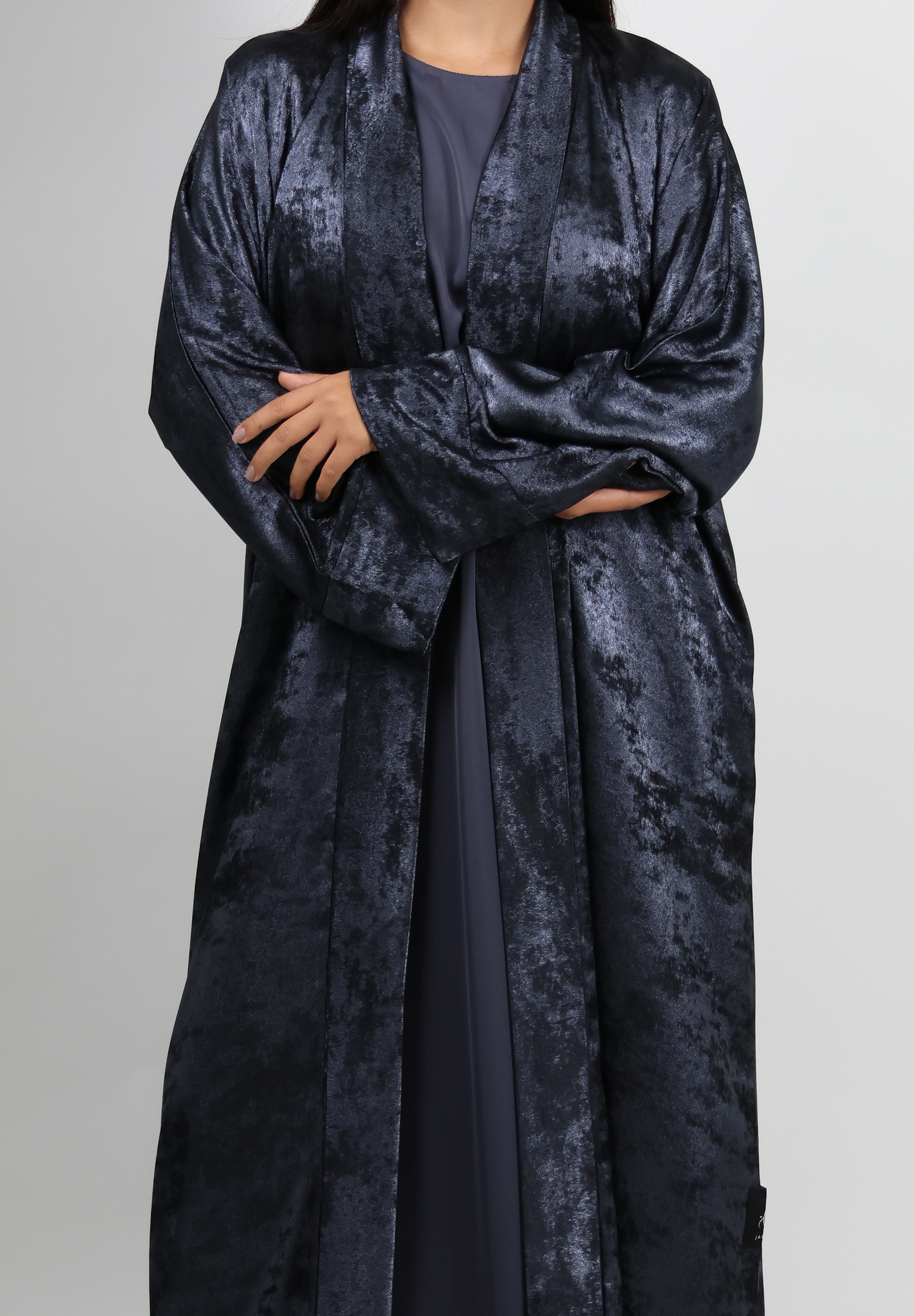 Luxurious Crushed Velvet Abaya - Deep Charcoal Elegance