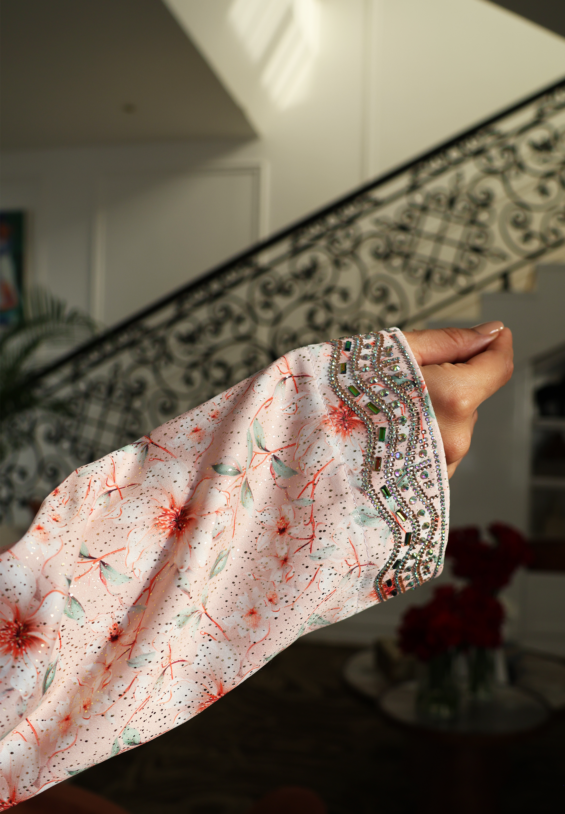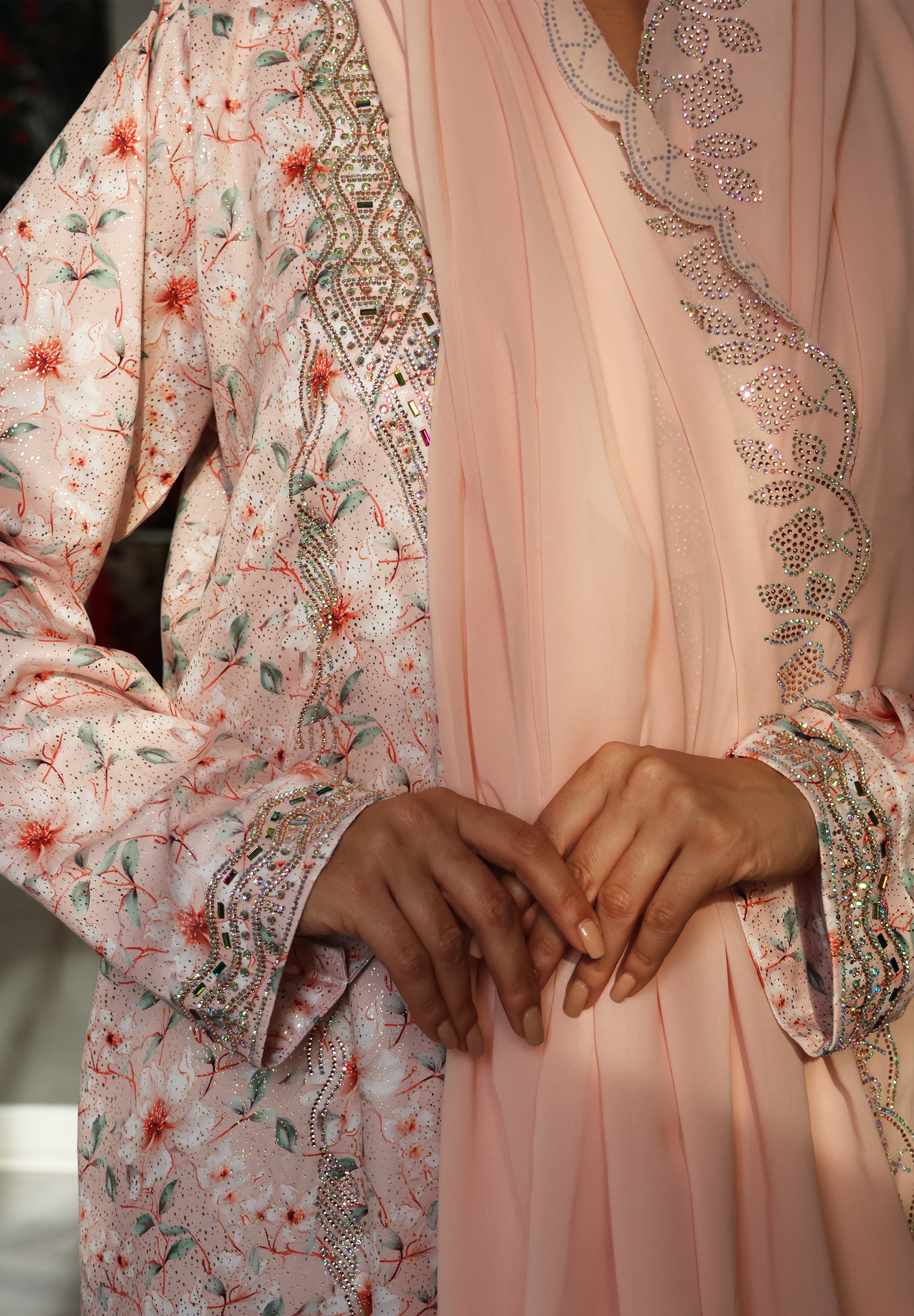 Peach Majesty Jalabiya – Ornate Gold & Crystal Embellished Design