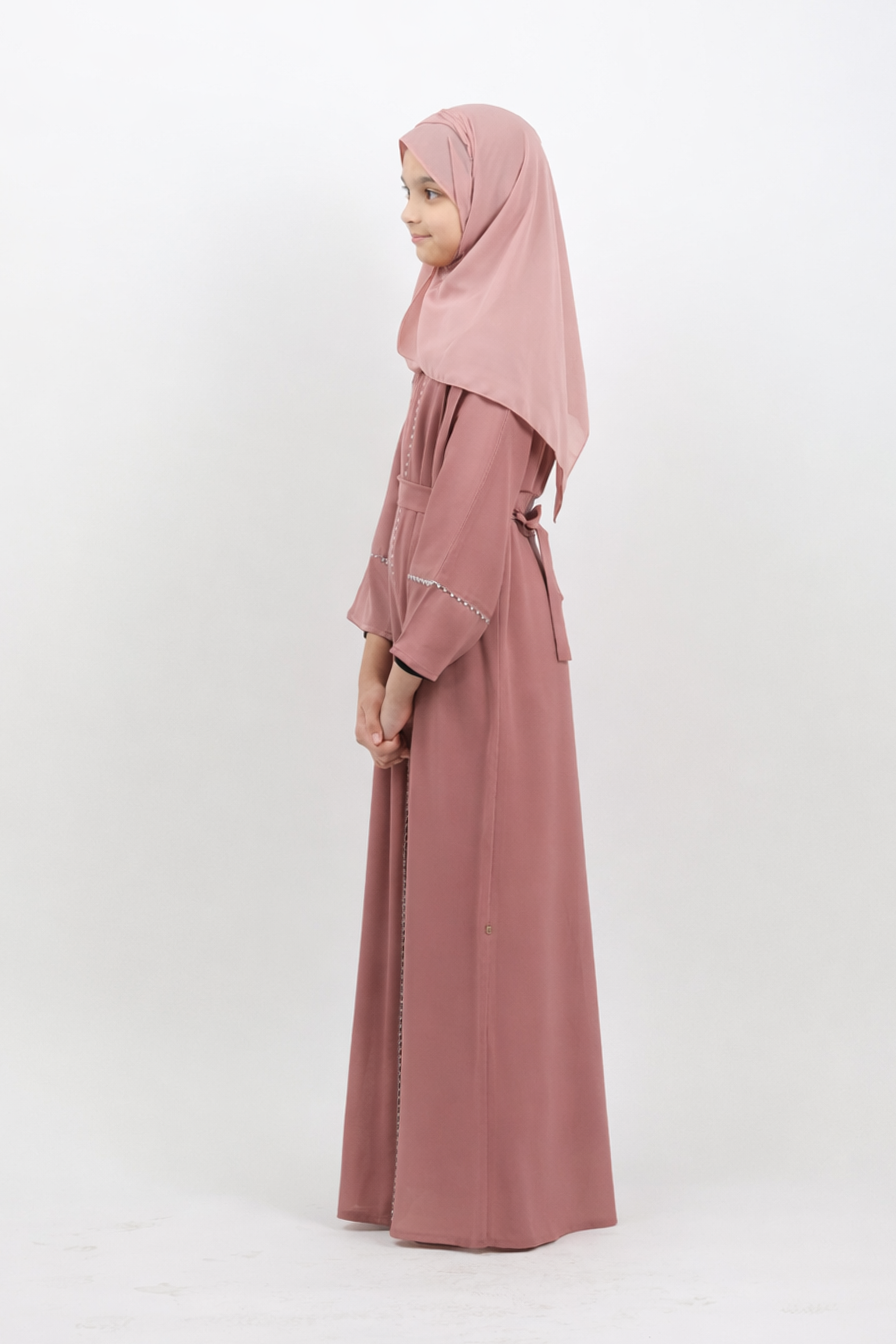 The Kids Rose Blossom Abaya – Blush Pink Elegance with Crystal Vines
